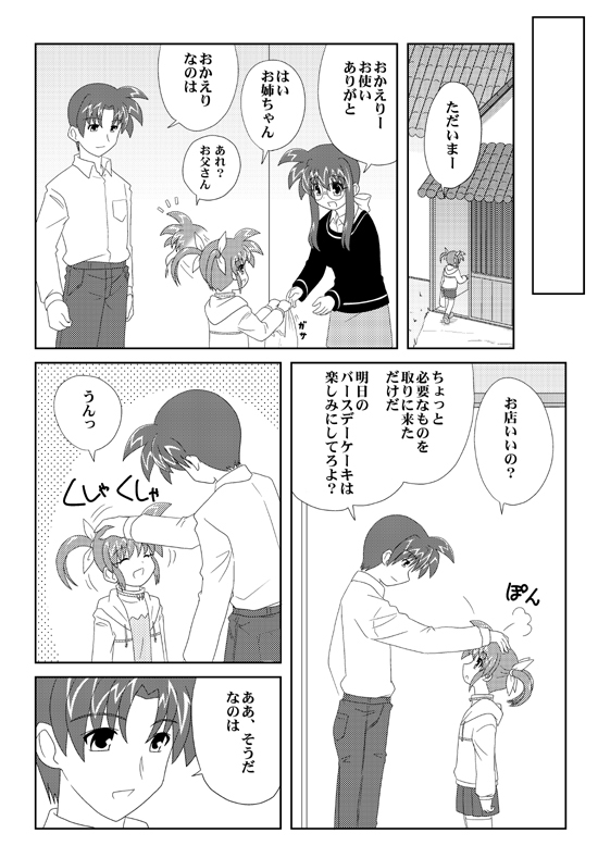 何気に父ちゃん初登場かも。 ていうか、士郎と恭也はもう少し描き分けやすいデザインにしてください_| ̄|○ 資料見たらほとんど一緒だったヨ。服以外では目の大きさくらい?(汗 続きはPN14にて。 ←面白かったら投票していただけると嬉しいです〜。 GO TO TOP